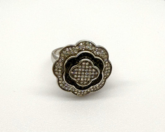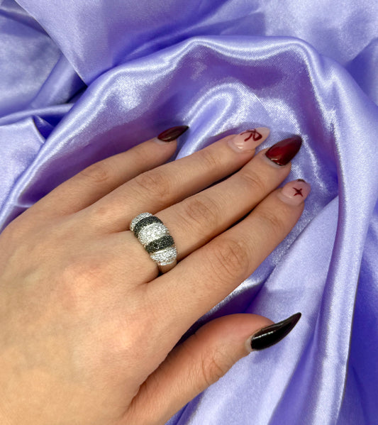 Bold Black Enamel Ring with Sparkling Cubic Zirconia Accents